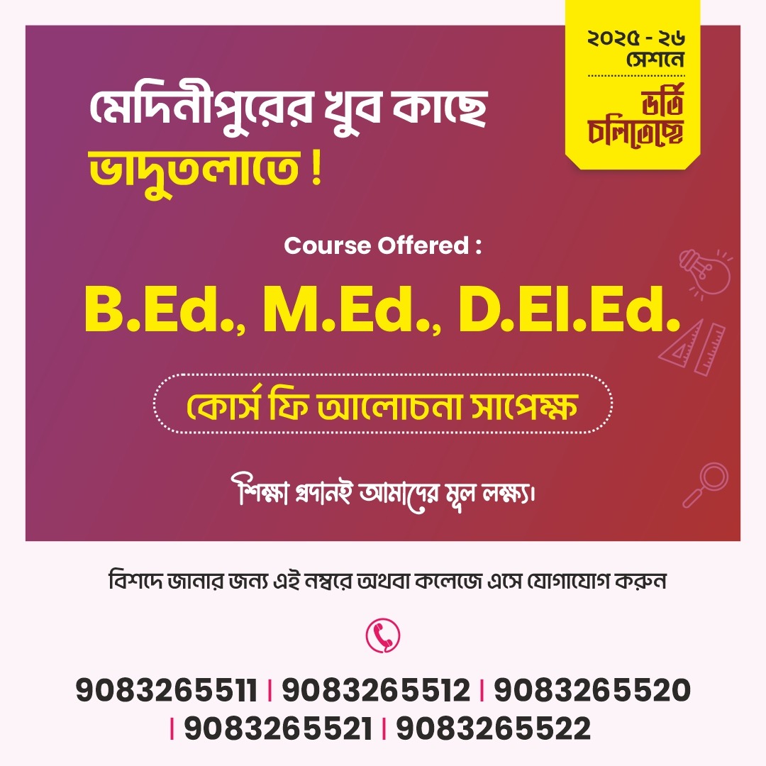 Nestled in the remote heart of Bengal, Institution of Teacher Education stands as a beacon of hope and progress where once education was only a distant dream. Established with the vision of nurturing educators who will illuminate the path of knowledge, we are committed to transforming lives through quality teacher training. Our institution is not just a college—it is a movement to empower communities, uplift rural youth, and create a generation of teachers who carry the torch of learning into every corner of society.Read More..