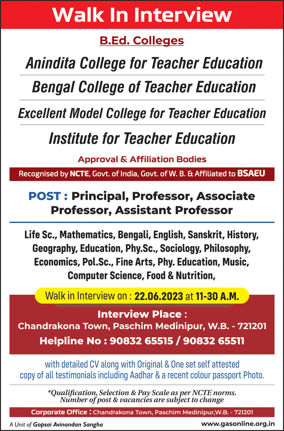 - Qualification : Bachelors and above